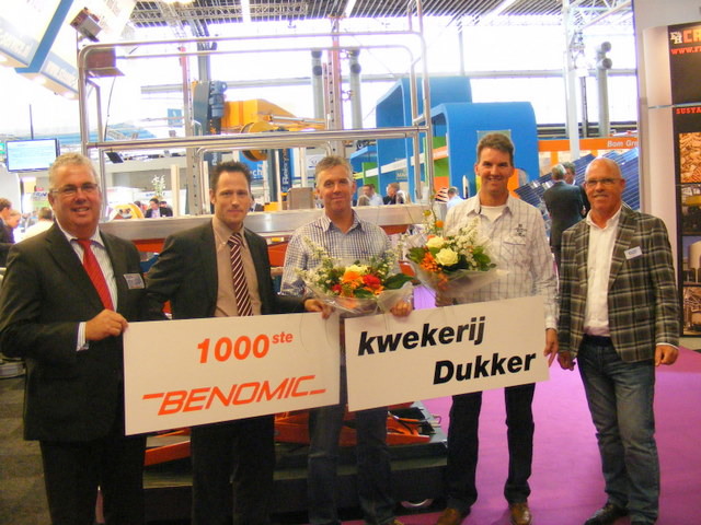 Bloemen voor de Gebr. Dukker. Ze kochten de 1000e Benomic bij Steenks Service.
