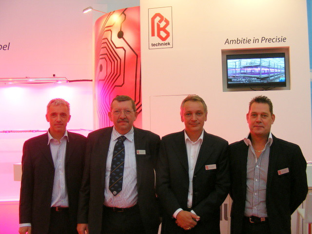 Ron in't Veen, Herman Batist, John Berghman en Nico van der Laan in de fraaie stand van de Prins-Groep