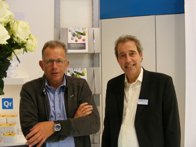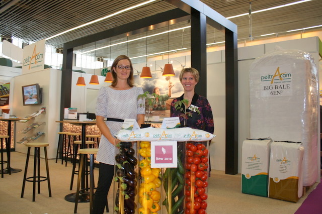Maaike Perneel en Els Thoelen van Peltracom. Het Belgische bedrijf probeert ook in de Nederlandse glasgroententeelt voet aan de grond te krijgen met haar duurzame substraten.