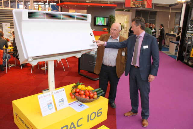 Aad de Koning geeft uitleg over de luchtverkoeler OPAC aan Ton van Eijk