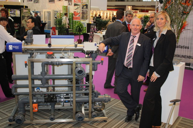 Veha introduceerde een nieuwe kraan naast de Dosatron-serie. Bert van Herwijnen en collega poseren trots
