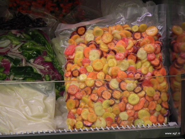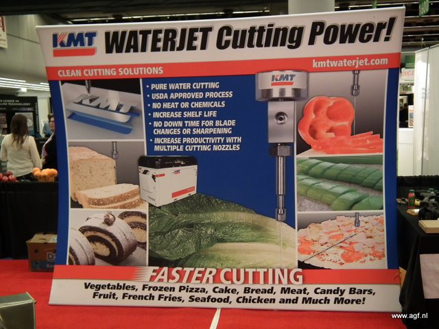 Groenten en fruit snijden met een waterstraal. Volgens de engineers verlengt het de houdbaarheid, is het hygiënischer en heeft de watersnijder een hogere capaciteit dan een normale snijmachine