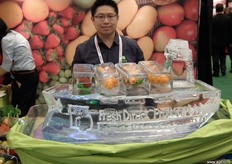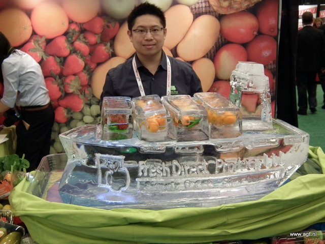 Fresh Direct Products is importeur van Aziatisch fruit. Op de beurs stond een waar schip van ijs met daarin fruit zoals baby mandarijnen etc.