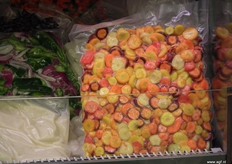 Verschillende kleuren wortelschijfjes in bulkverpakking