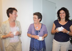 Mariska Werring, Lydia Duijvestein en Karina van de Goor genieten bij het ontvangst van een lekkere kop koffie/thee.