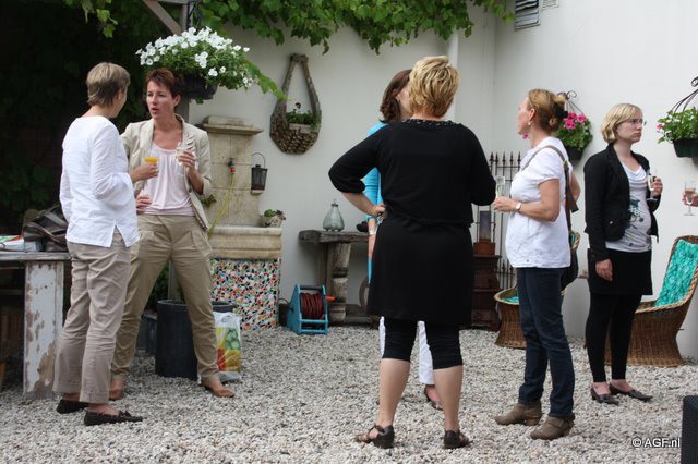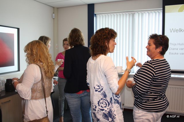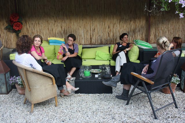 Marina Jansen-van Arkel en Janny van Arkel in gesprek met Miriam Lanfermeijer-Kooij (Kooij Antwerpen bvba).