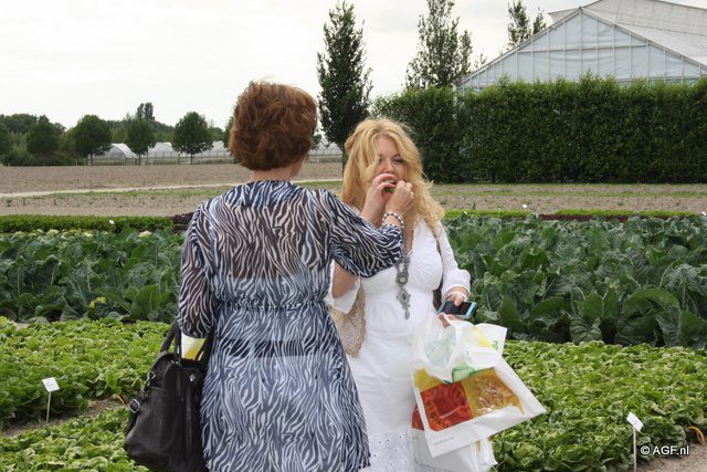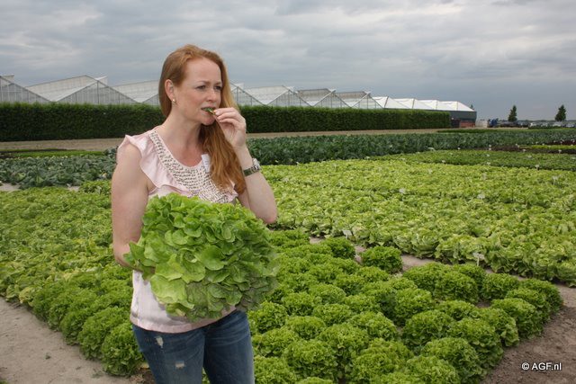 Silvia van den Aardweg van GroentenFruitBureau proeft de sla.