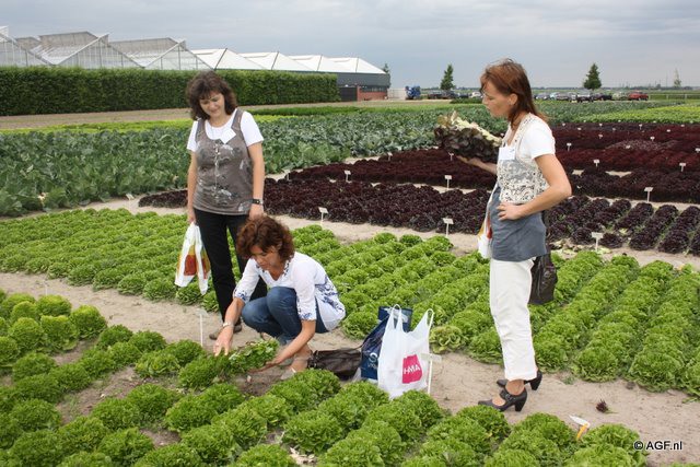 Bauke snijdt kroppen sla voor de vrouwen die er een mee wilden nemen.