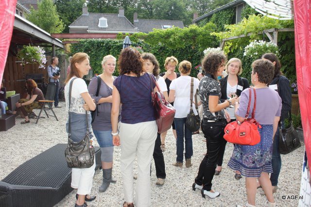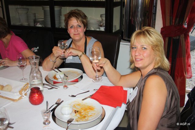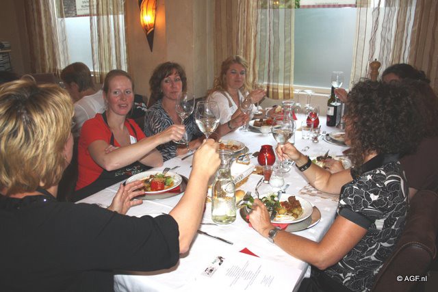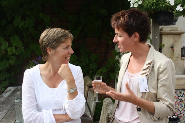 Genieten van de champagne! Linda Barzilay en Marjolein v.d. Berg van Combilo.