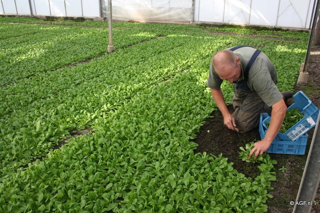 Een andere teler: Brovo Bvba. Bij dit bedrijf wordt de veldsla geoogst, gewassen en kleinverpakt.