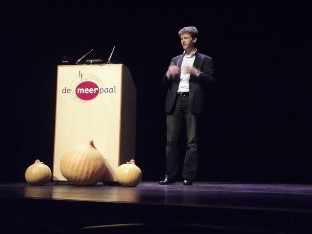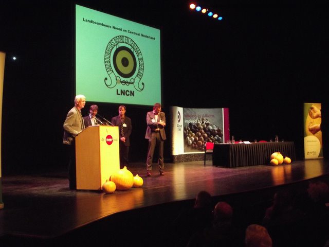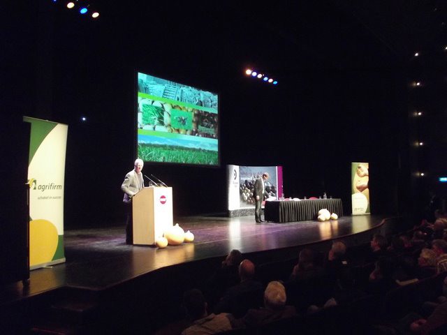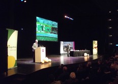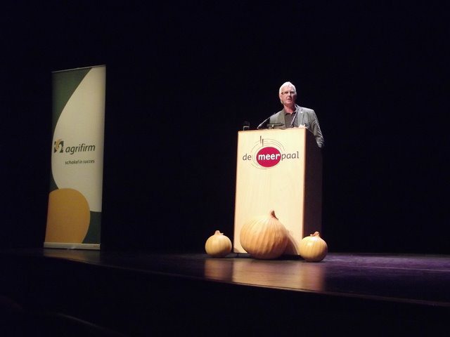 Gijsbrecht Gunter, voorzitter comité Uienhandel van Frugi Venta, met de lezing over het wereldwijd vermarkten van uien.