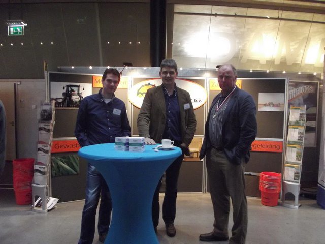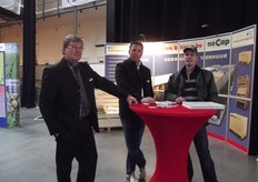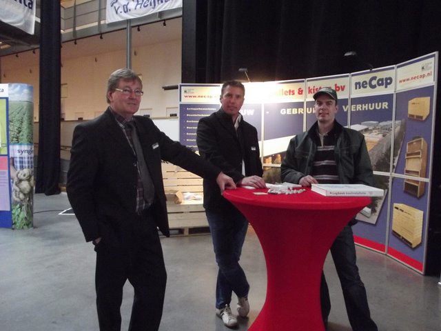 Martin Broers en P. Goosens van NeCap pallets & kisten b.v. met Gerard Goedegebure van Agrodust.