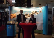Jeroen Nijenhuis van Agrifirm in overleg met Paul Goorden van Cebeco.