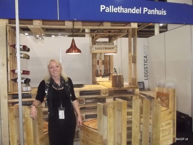 Melissa Panuis van Pallethandel Panhuis was ook aanwezig met een originele aankleding van de stand. Ze leren van elke beurs en wilde deze keer ook de mogelijkheid hebben om bezoekers uit te nodigen voor een drankje.