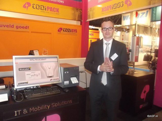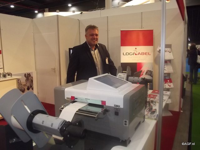 Marco van der Velden van Logi-label. Hij presenteerde een etikettenprinter voor full colour labels. Deze printer maakt je flexibeler als bedrijf doordat je met de juiste snelheid en lage kosten naar eigen behoefte kunt printen.