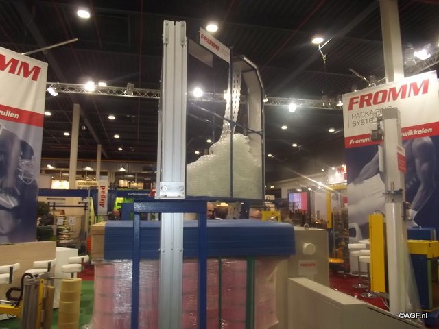 Ook Fromm liet zich duidelijk zien. Dit is een Zwitsers bedrijf in omsnoeren, foliewikkelen en opvulling met luchtkussens.