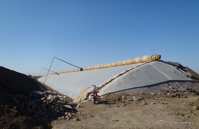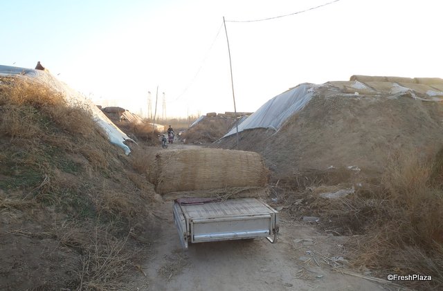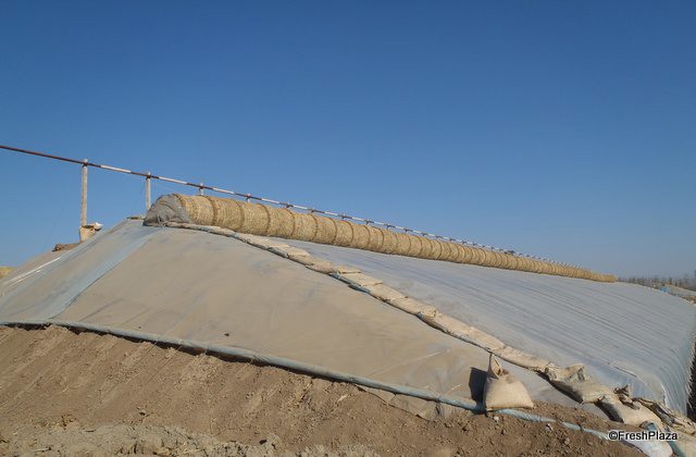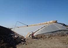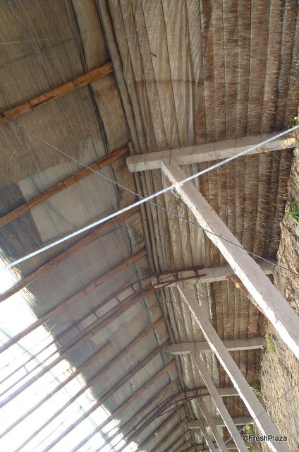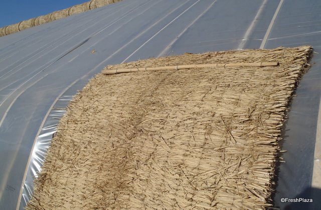 De matten van stro kunnen in de nacht naar beneden gerold worden om de warmte binnen te houden