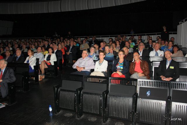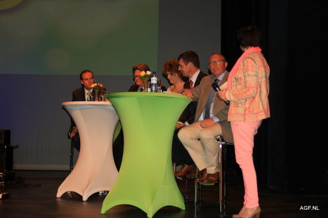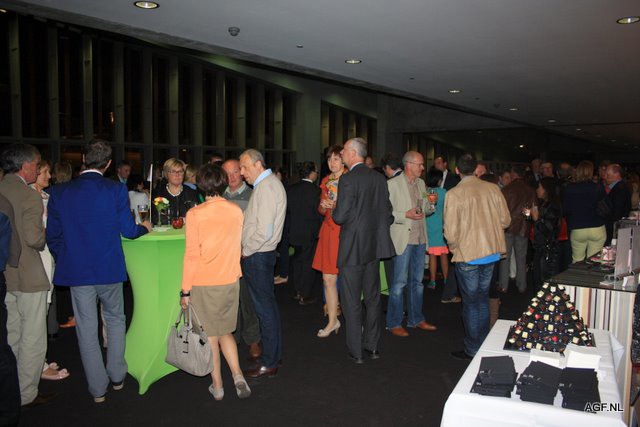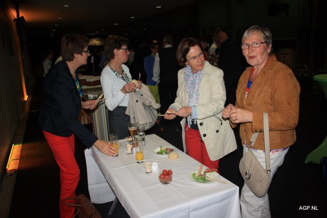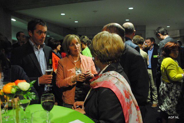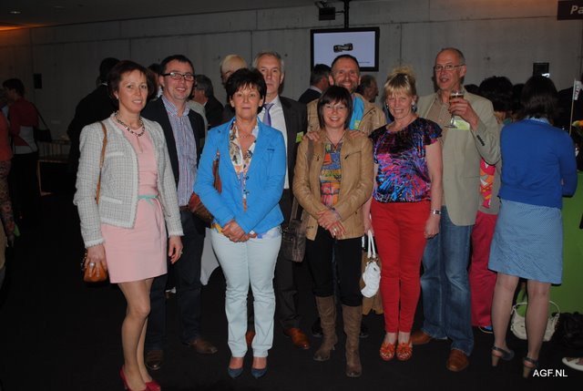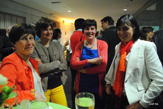 De dames kleurden fleurig tussen de overwegend grijze pakken van de mannen