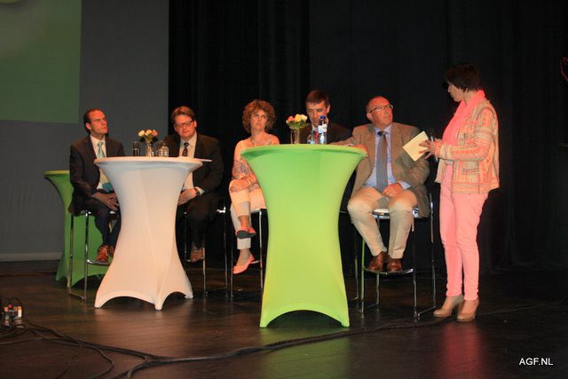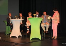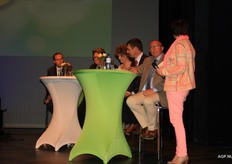 De panelleden: V.l.n.r.: Dominiek Keersebilck (Commercieel Directeur REO Veiling), Sven Vandevoorde (Category manager Delhaize), Ann Beyne (Commercieel verantwoordelijke Tomabel), Henk Vandevelde (voorzitter Tomabel) en Michel de Smul (AGF-handelaar en eerste klant Tomabel).