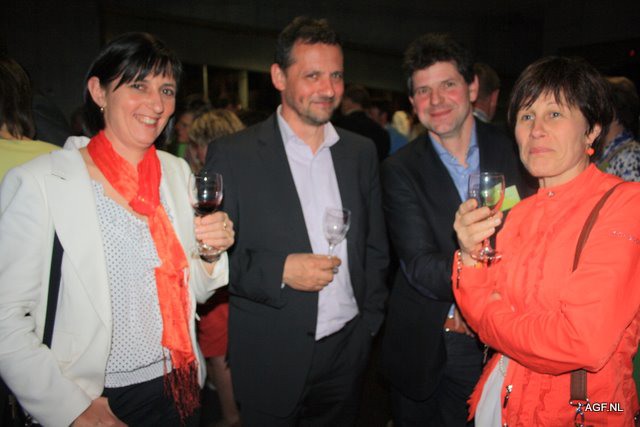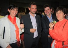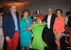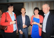Links Rita Demaré (voorzitter van de REO Veiling) met haar man en rechts teler Paul Demyttenaere en echtgenoot