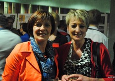 Ook de dames van exportbedrijf Pacbelimex waren aanwezig. Anna Bachelet en Valérie Braems samen met een klant.