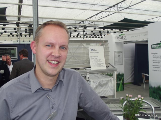 Leon Lankester van Agro Adviesburo bekijkt de stand van Lacquey.