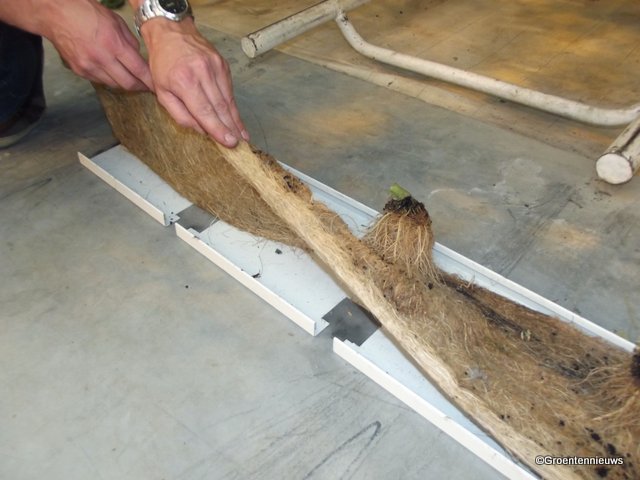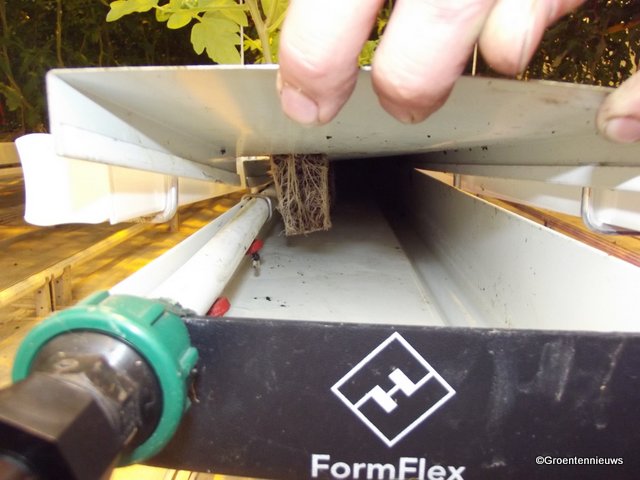 Futagrow: Hier worden tomatenplantjes die in al een bloemetje hebben in kokos gezet. Het groeit verder op water.