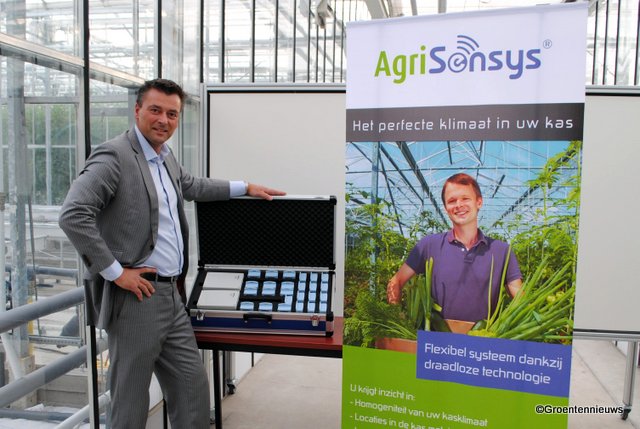 Bas Visser van AgriSensys. De sensoren van AgriSensys worden nu geleverd in een praktische koffer. Zo is ook het verhangen van de sensoren eenvoudiger.