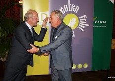 Innige felicitatie tussen voorzitters Kees Wantenaar (DPA) en Cees den Hollander (Frugi Venta)