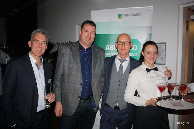 ABN Amro Food, Retail & Leisure team: Niels Dijkman, Alphons de Koning, Willem Briët en Anita Kasteel tonen hun committent met de AGF-sector tijdens de borrel.