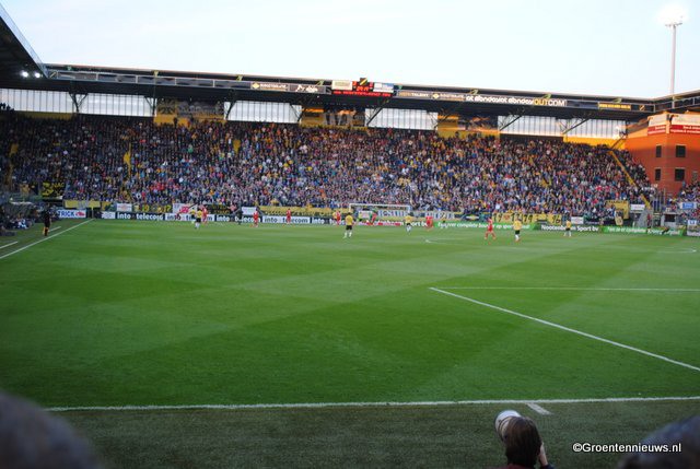 Vlak bij het veld. Vlak hierna werd er overigens ook gescoord.