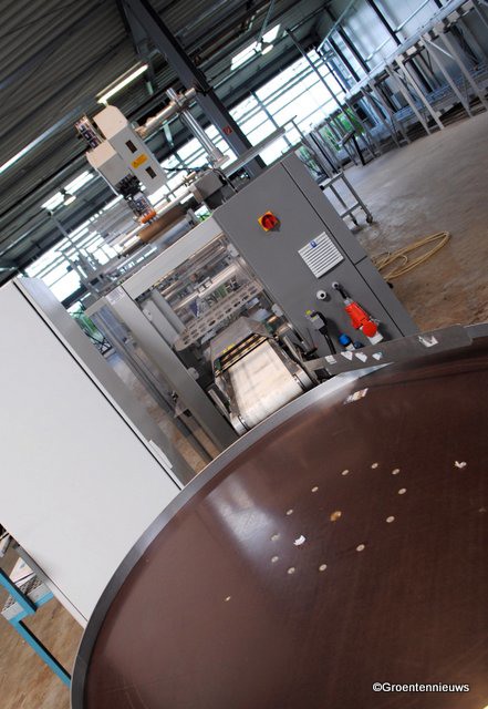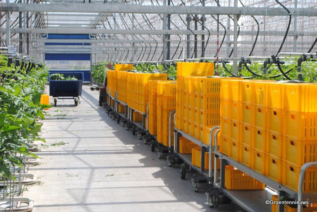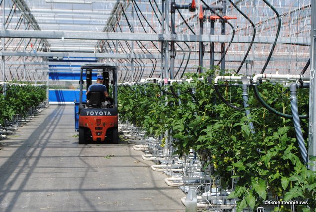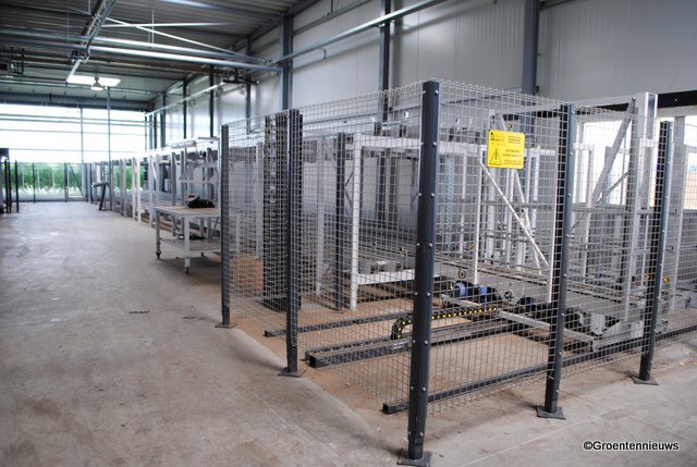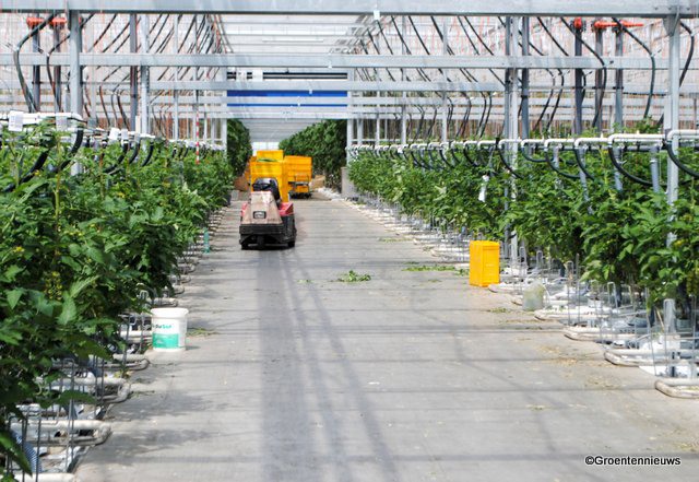 Het transportsysteem voor de tomaten was nog niet in gebruik. Nu is de oogst van tomaten ook in volle gang.