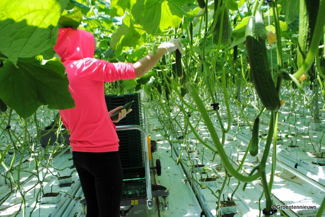 Snackkomkommer Mewa. Het areaal is dit jaar uitgebreid naar 8.000 meter.