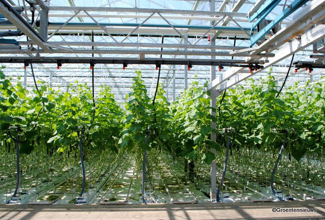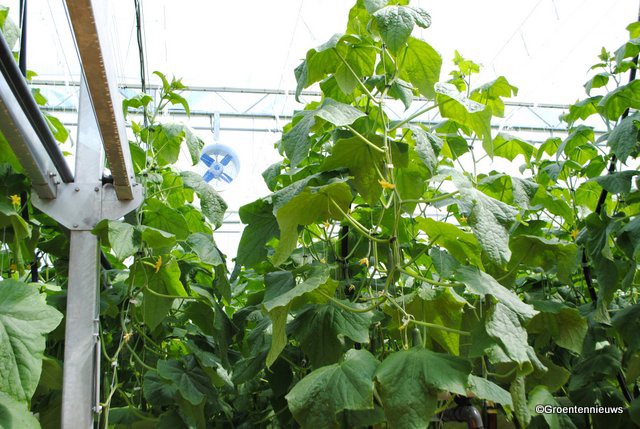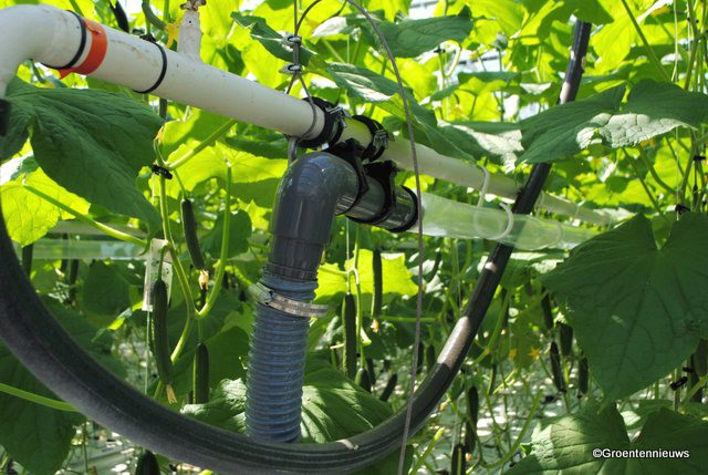Gietboom boven de komkommerplanten? Toch maar niet.