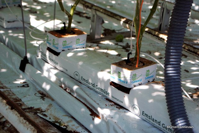 De tomaten staan op growbags van Kleeschulte en Dutch Plantin, maar met andere substraten worden proeven uitgevoerd.