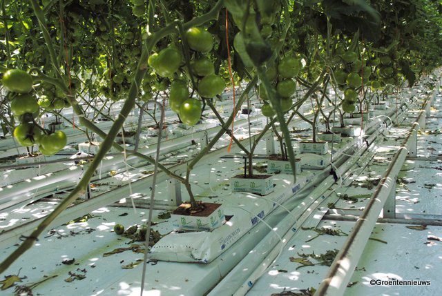 Van de trostomaten staat 3 hectare op Knauf Perlite/Kleeschulte growbags