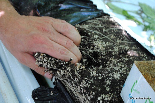 Peters is te spreken over de luchtige textuur en de goede doorworteling van de Kleeschulte growbags.
