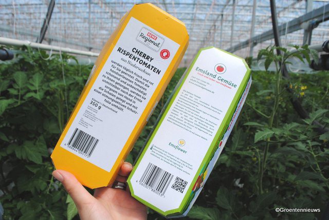 Op zowel de verpakkingen voor retailer Rewe als de eigen verpakking wordt informatie gegeven over de herkomst van de tomaten.