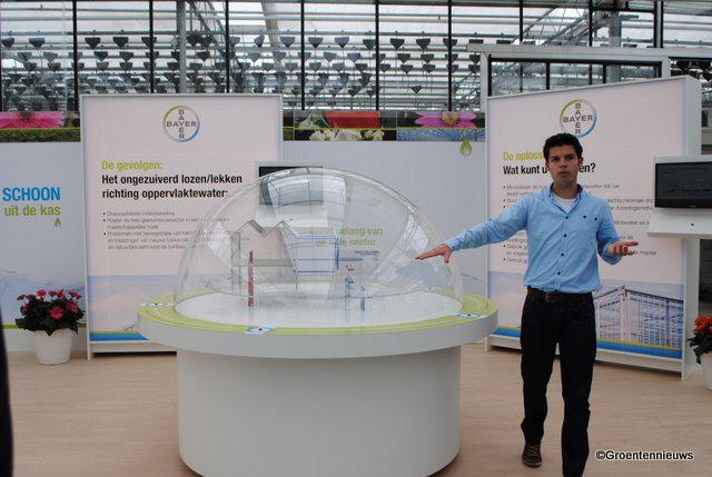 Een van de nieuwste partners is Bayer. Het bedrijf wil telers ervan bewust maken de lozing van gewasbescherming te verminderen. Als dat niet gebeurt, wordt het toegestane pakket gewasbescherming steeds smaller.