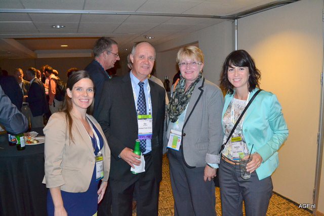 De landbouwraad van Washington Ton Akkerman met Irene Folkman en Dirk Deboer van USA Onions
