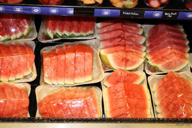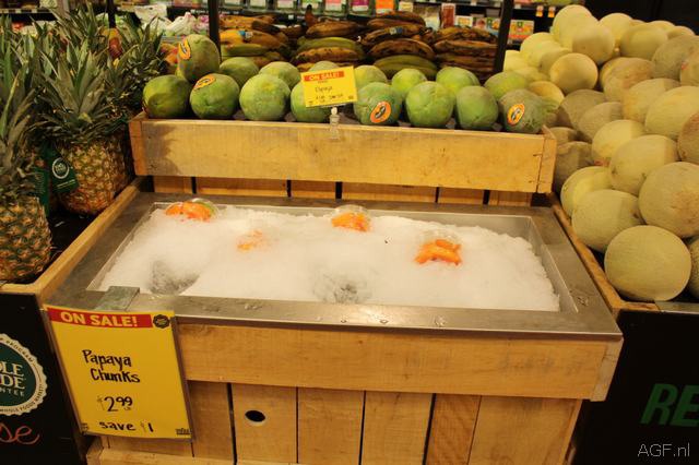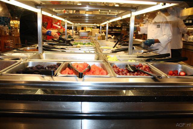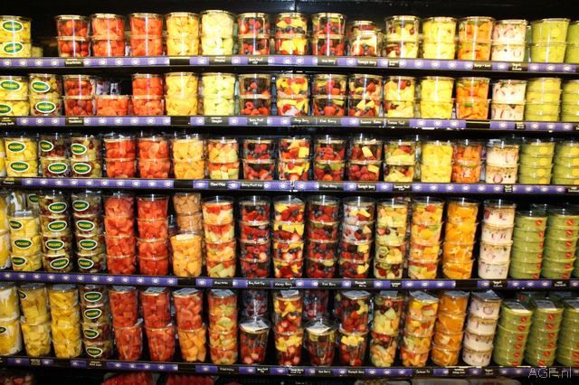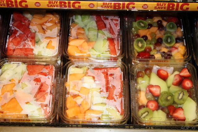 Fruitsalades in grote bakken. Op z'n Amerikaans