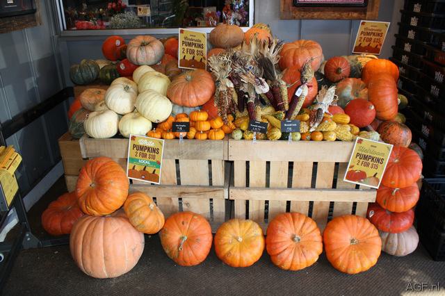 2 pompoenen voor $15, maar dan heb je wel een joekel