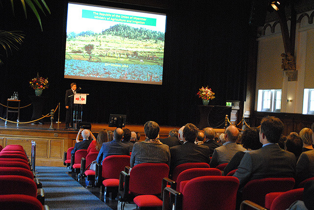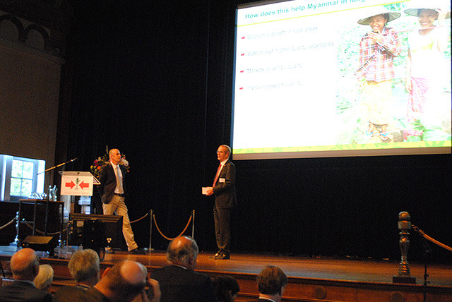 Tin Htut en Orlando de Ponti, oud-voorzitter van het International Seed Federation en dagvoorzitter