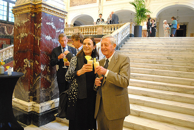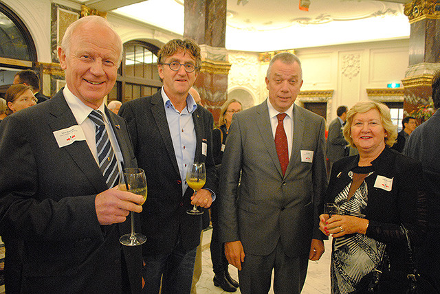 Nico Koomen van de Nederlandse Tuinbouwraad, Jeroen de Haas van De Groot en Slot, Jan Baas van gemeente Enkhuizen en Ans Koomen