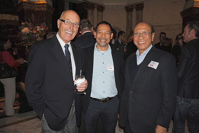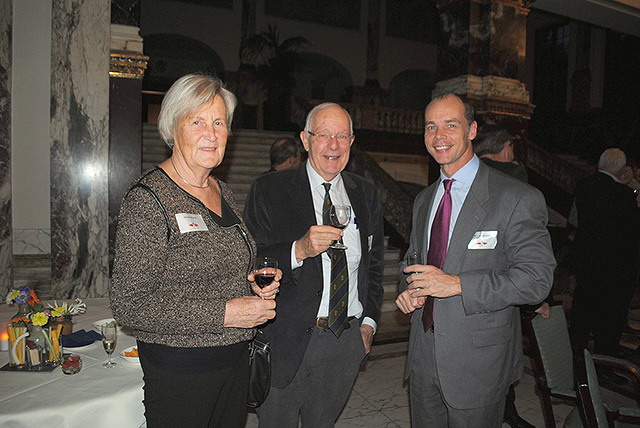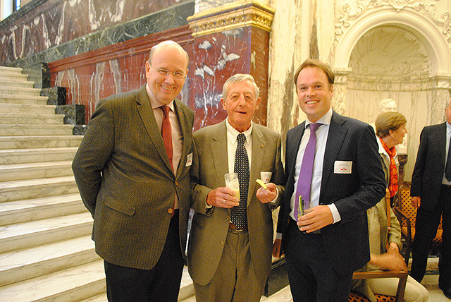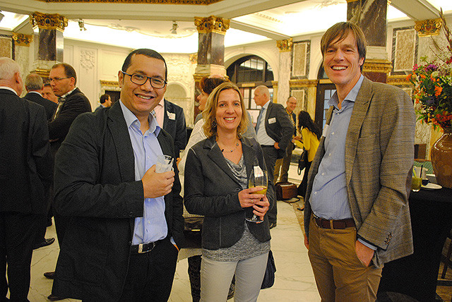 Jan-Willem Breuking (Incotec) met de jarige Simon Groot en Rubert Konijn van de Topsector tuinbouw & uitgangsmaterialen