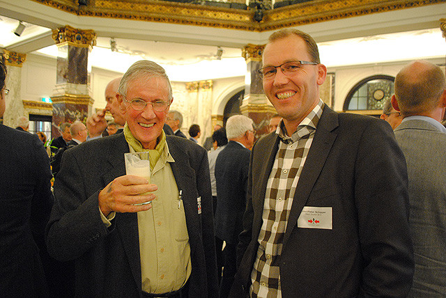 Vrienden sinds de studie, inmiddels 63 jaar geleden. Dolf Einthoven en Ronald op den Orth.