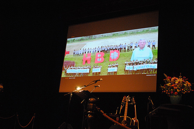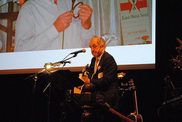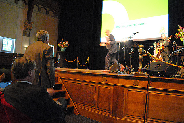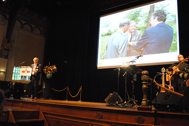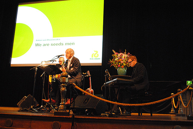 En een van de emotionelere momenten van de viering. Anton van Doornmalen, Rijk Zwaan, toont op muzikale wijze zijn waardering voor zijn concurrent en collega.