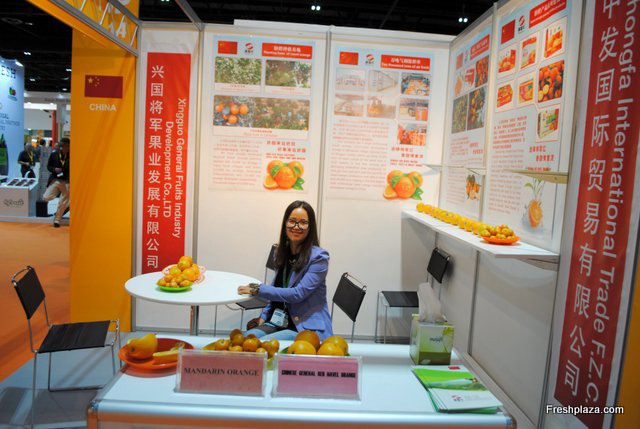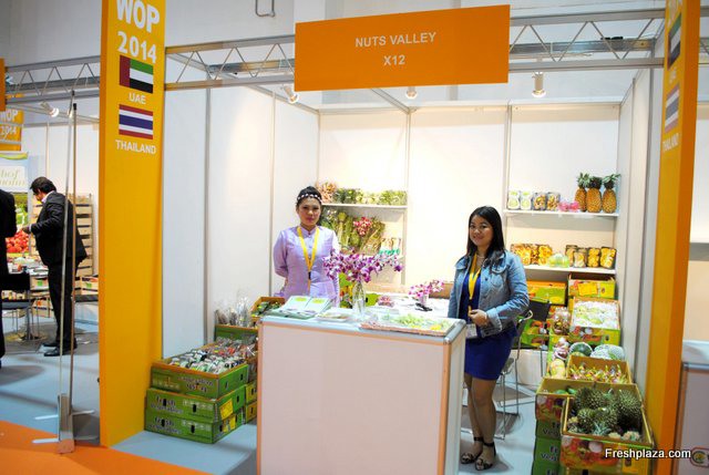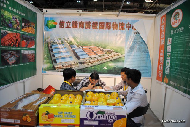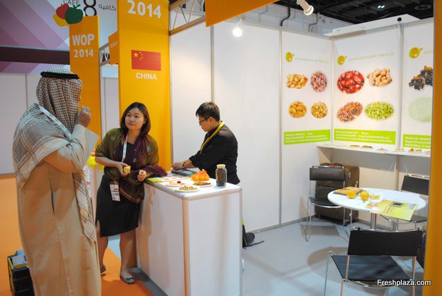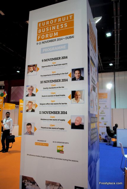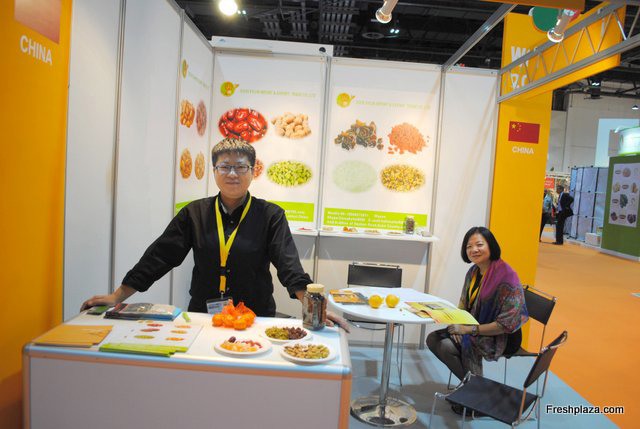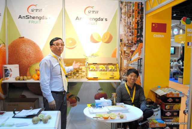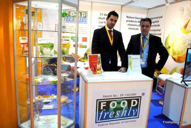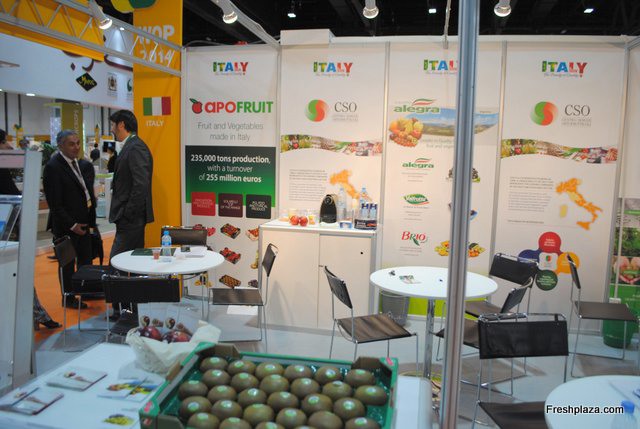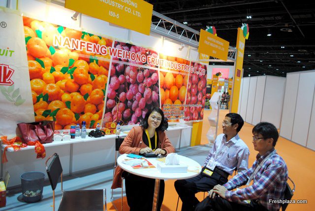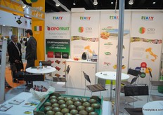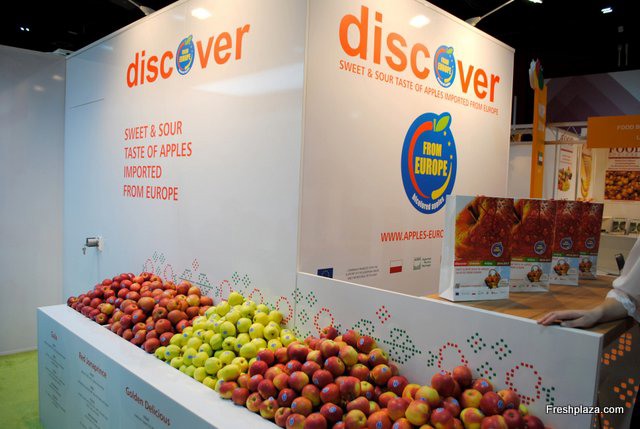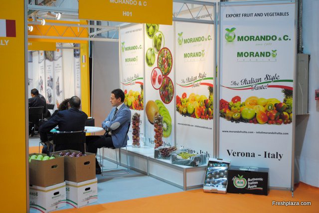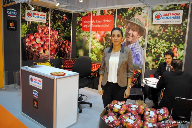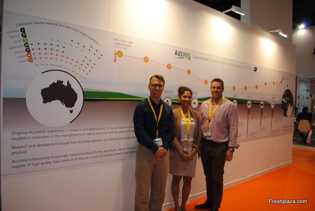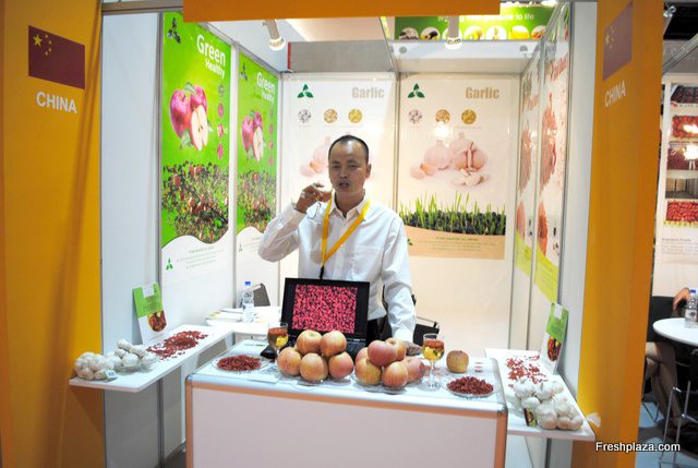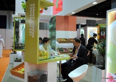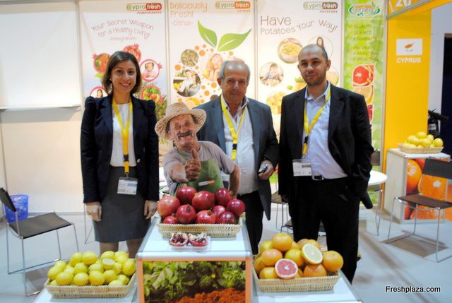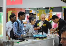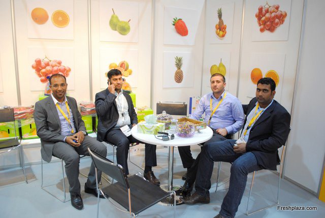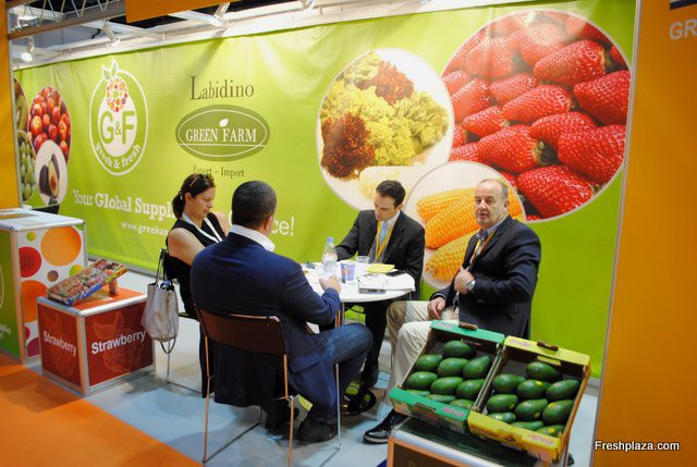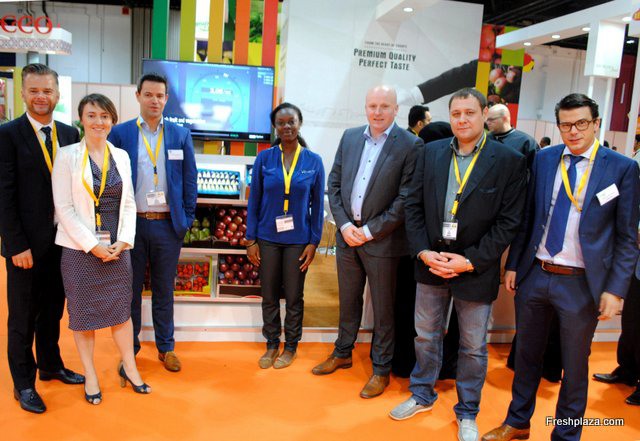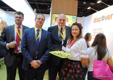 Belgie was goed vertegenwoordigd. Onder de slogan Premium Quality, Perfect Taste - Fresh from Belgium verenigden verschillende bedrijven zich. Op de foto Jan Engelen (Veiling Hoogstraten) Sofie Lambrecht (Vlam), Philip Appeltans (VBT), Isabelle Ossey (Biorano) Jo Lambrecht van BelOrta, Vitaliy Poplevin van Bel'export en Anthony Henderson van Agrafresh Van de Vlam-delegatie maakten verder Tony Derwael (Bel'export), Ali Nasser (Biorano), Dries Sebrechts en Veronique Vanherle (DSF) deel uit.