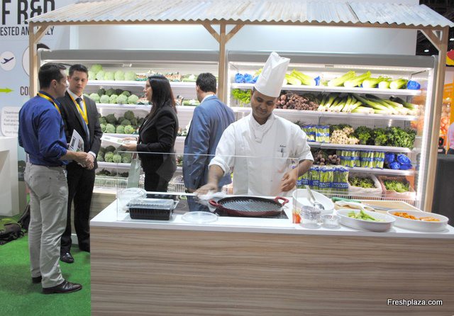Kok in de stand van Ausveg, trok samen met de verse producten zeker bekijk