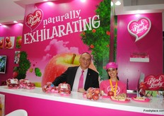 Jean-Louis Colombat van Pink Lady met een van de hsotessen.